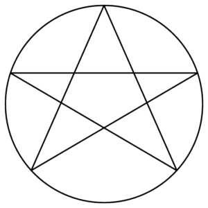 Pentagram representing the elements of earth, air, fire, and water. It is associated with balance, harmony and the connection bettwee physical and spiritual realms. It provides energetic protection and can be worn as a talisman or drawn on objects or surfaces.